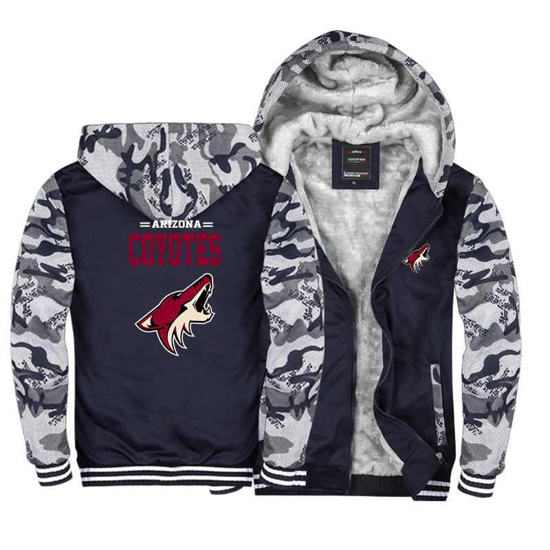 Arizona Coyotes Hockey Team Unisex Lined Hoodie Fleece Sweatshirt Full Zipper Hooded Thicken Jacket