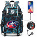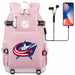 Columbus Blue Jackets Hockey League USB Charging Backpack School Notebook Travel Bags