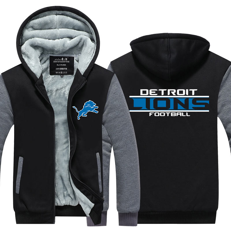 Detroit Football Team Lions Unisex Lined Hoodie Fleece Sweatshirt Full Zipper Hooded Thicken Jacket