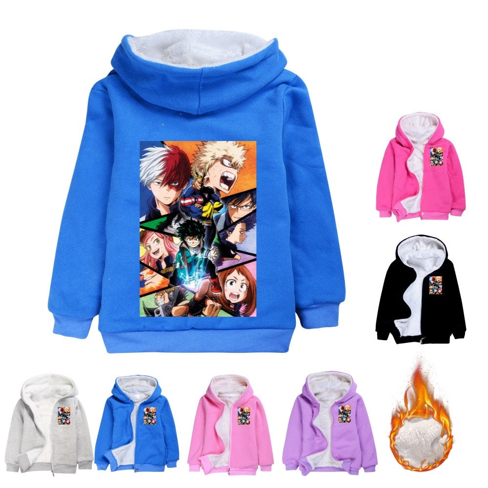 My Hero Academia Sherpa Lined Hoodie Fleece Sweatshirt Full Zip Jacket for Kids