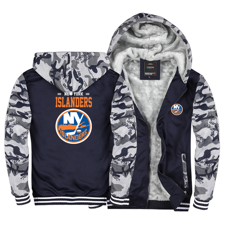 New York Islanders Jackets Hockey Team Unisex Lined Hoodie Fleece Sweatshirt Full Zipper Hooded Thicken Jacket