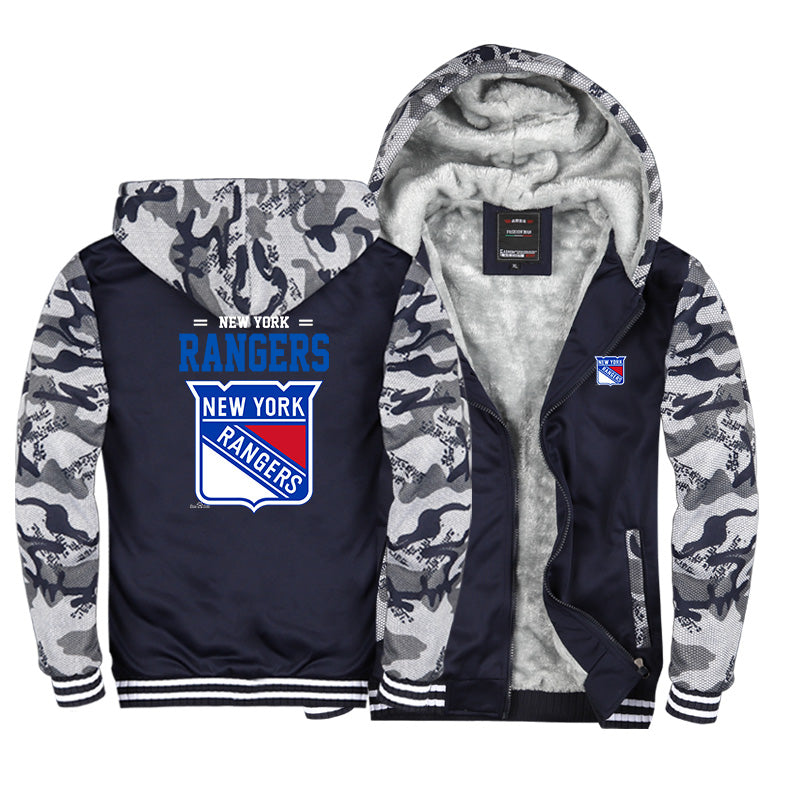 New York Rangers Jackets Hockey Team  Unisex Lined Hoodie Fleece Sweatshirt Full Zipper Hooded Thicken Jacket