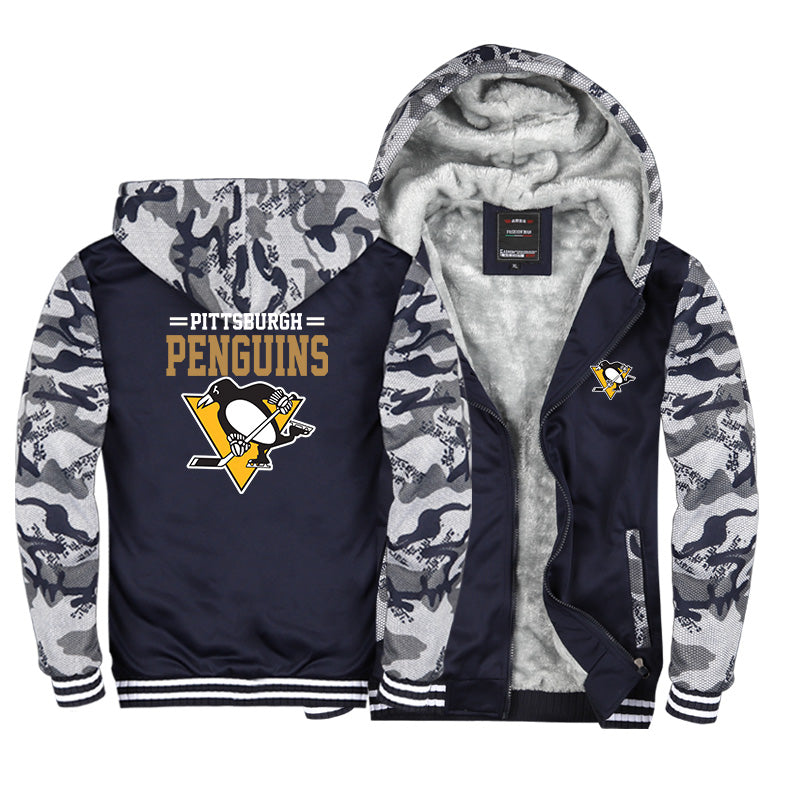Pittsburgh Penguins Jackets Hockey Team Unisex Lined Hoodie Fleece Sweatshirt Full Zipper Hooded Thicken Jacket