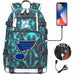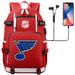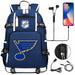 St Louis Blues Hockey League USB Charging Backpack School Notebook Travel Bags