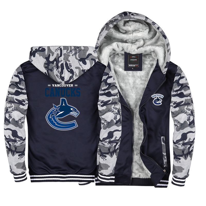 Vancouver Canucks Hockey Team Unisex Lined Hoodie Fleece Sweatshirt Full Zipper Hooded Thicken Jacket