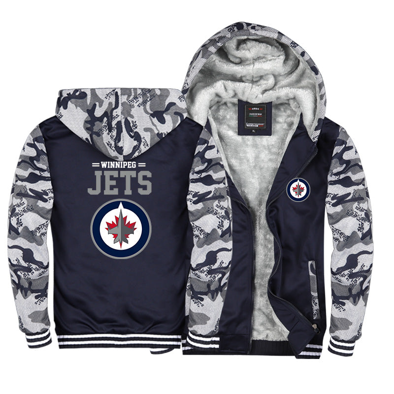 Winnipeg Jets Hockey Team Unisex Lined Hoodie Fleece Sweatshirt Full Zipper Hooded Thicken Jacket